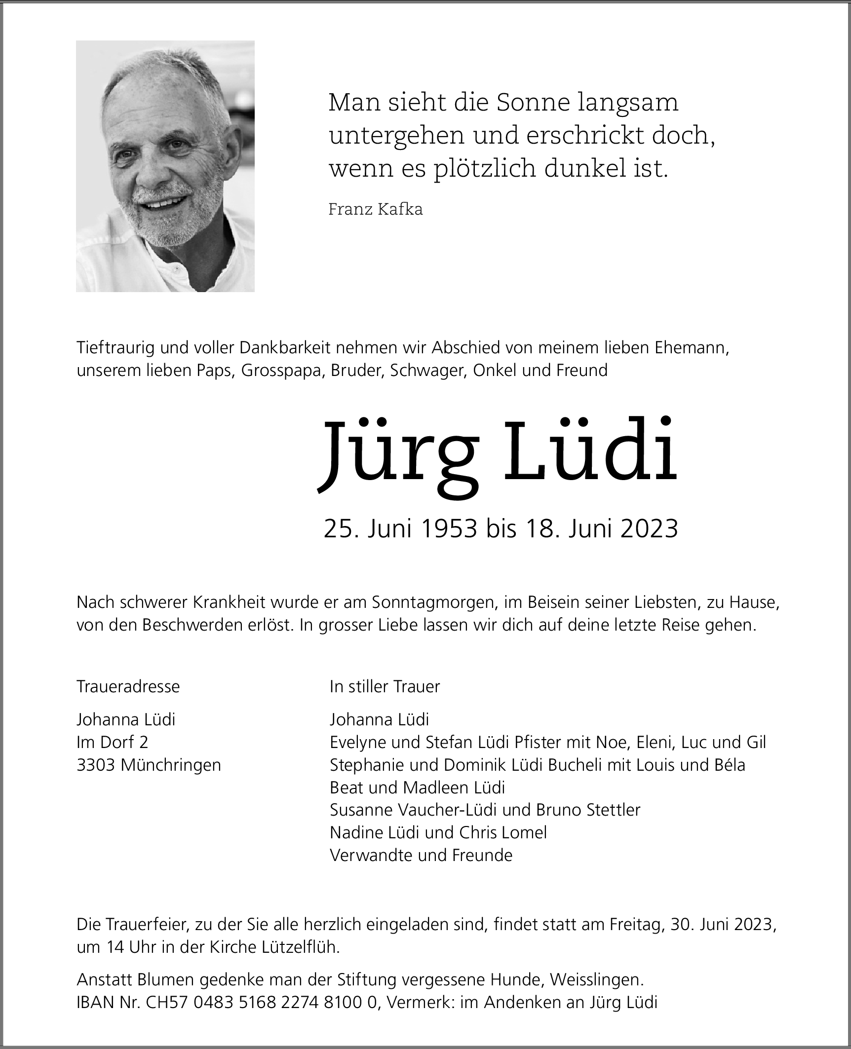 Möchten Sie über neue Todesanzeigen und Kondolenzen für diesen Verstorbenen informiert werden?