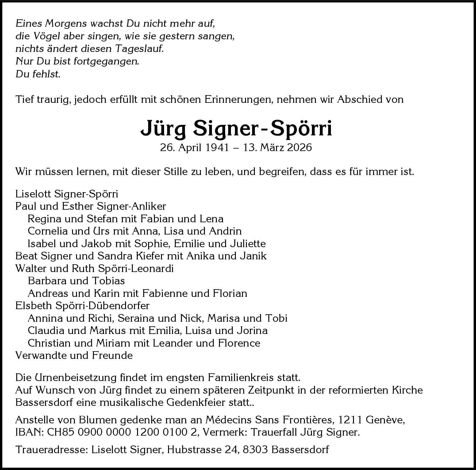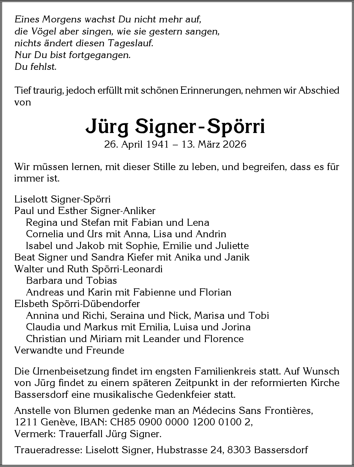 Möchten Sie über neue Todesanzeigen und Kondolenzen für diesen Verstorbenen informiert werden?