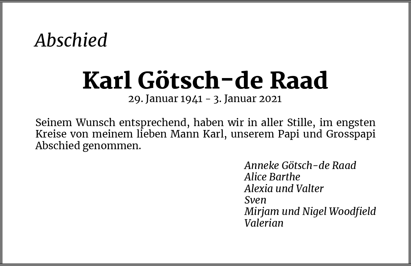 Möchten Sie über neue Todesanzeigen und Kondolenzen für diesen Verstorbenen informiert werden?