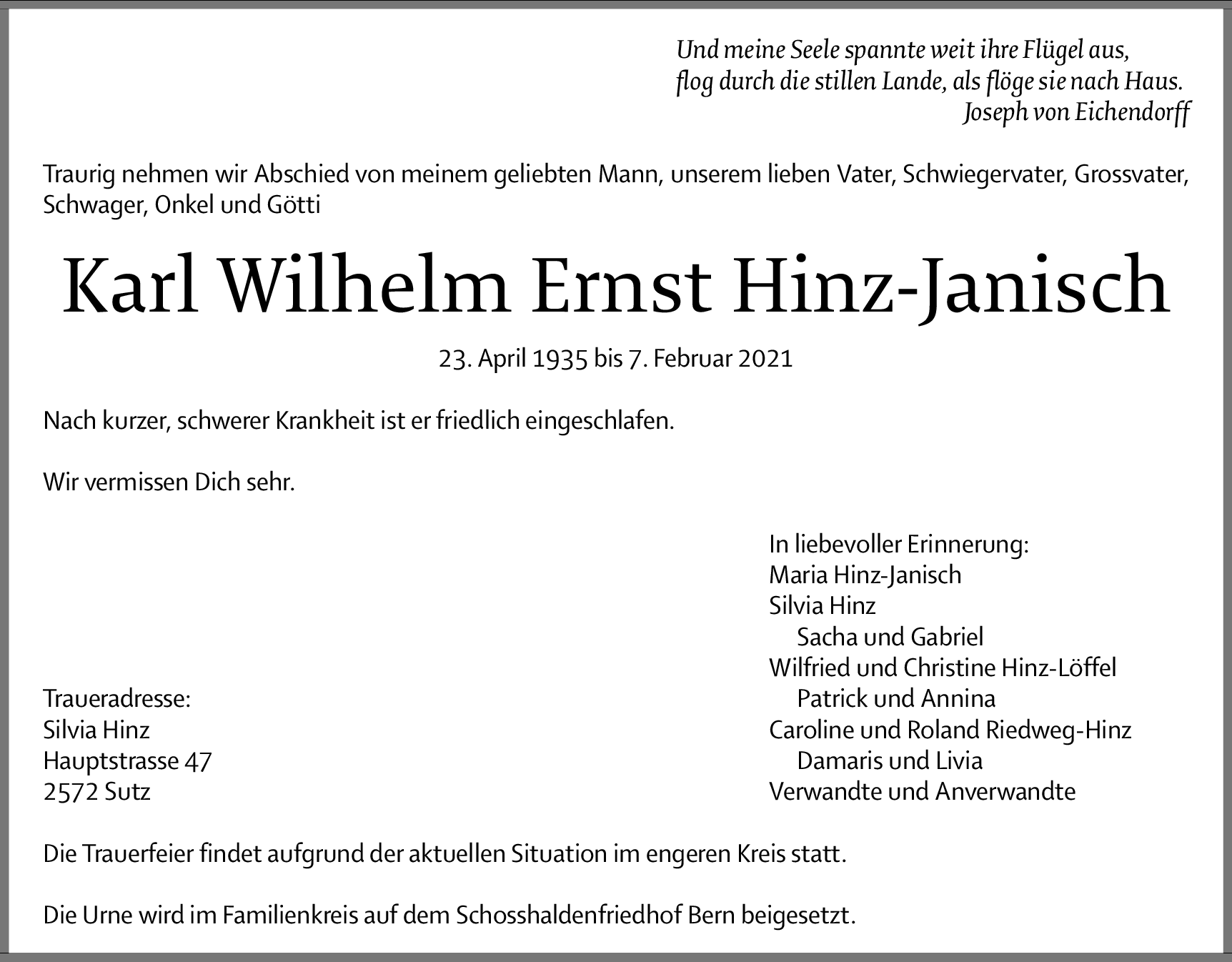 Möchten Sie über neue Todesanzeigen und Kondolenzen für diesen Verstorbenen informiert werden?