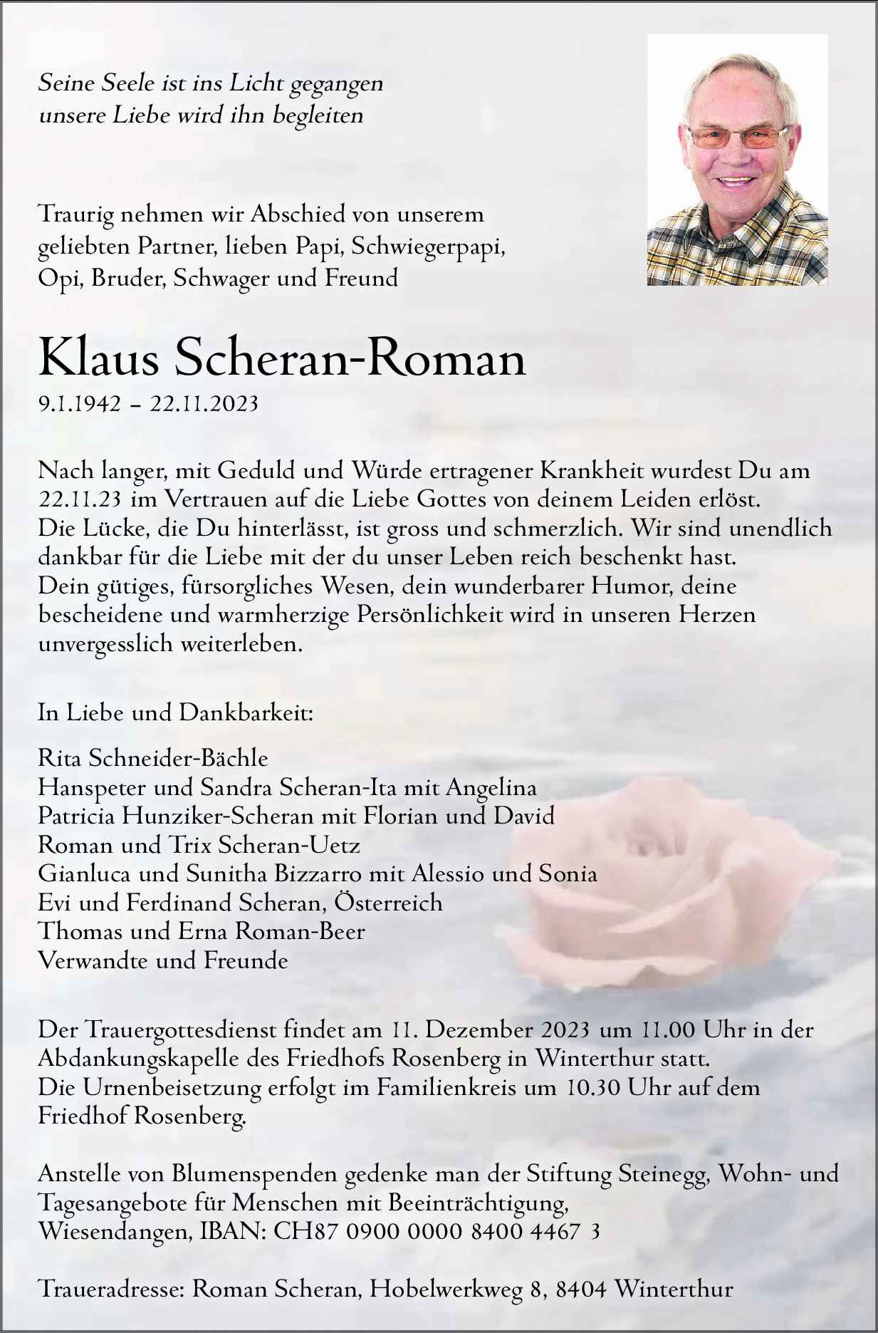 Möchten Sie über neue Todesanzeigen und Kondolenzen für diesen Verstorbenen informiert werden?