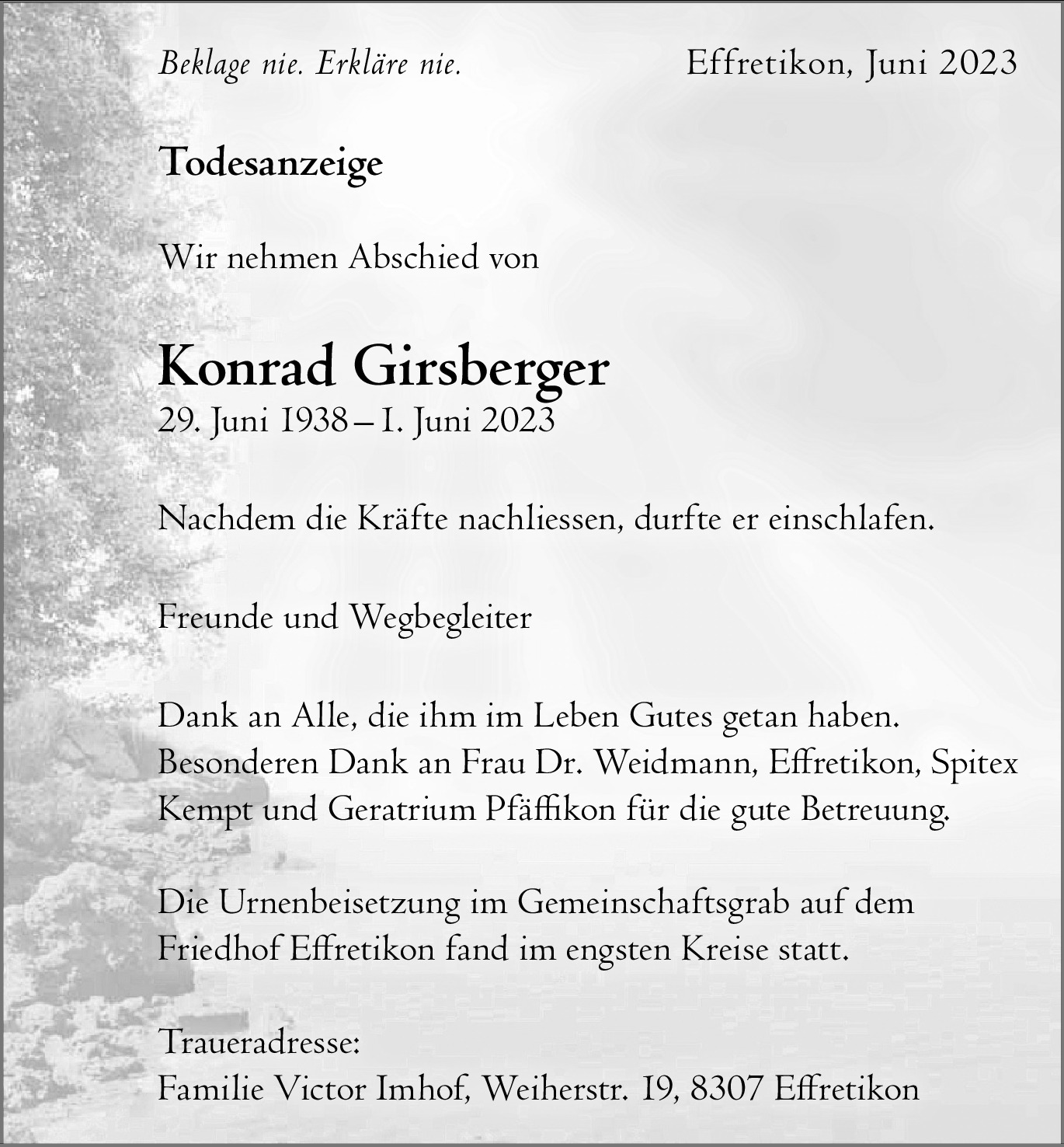 Möchten Sie über neue Todesanzeigen und Kondolenzen für diesen Verstorbenen informiert werden?