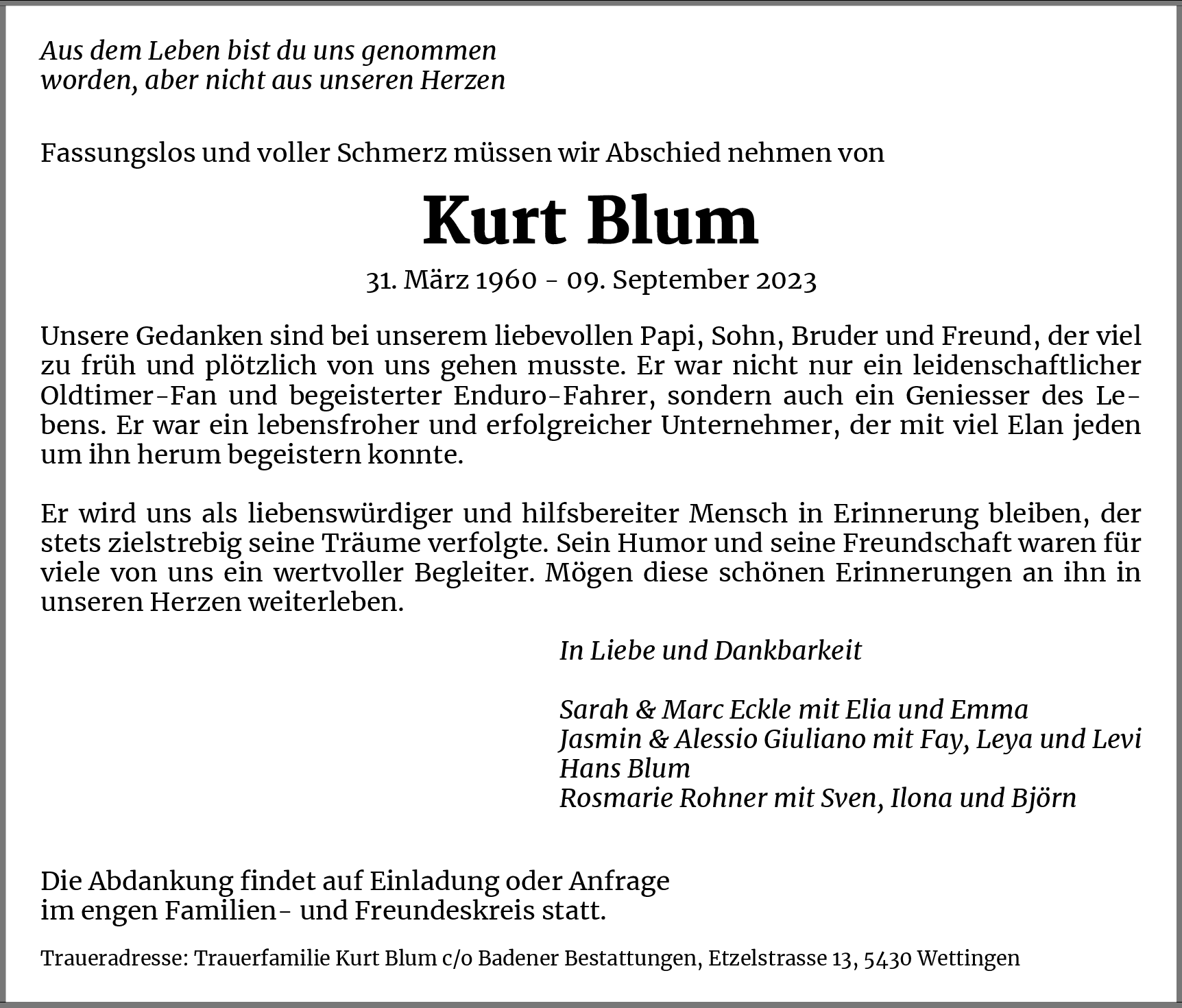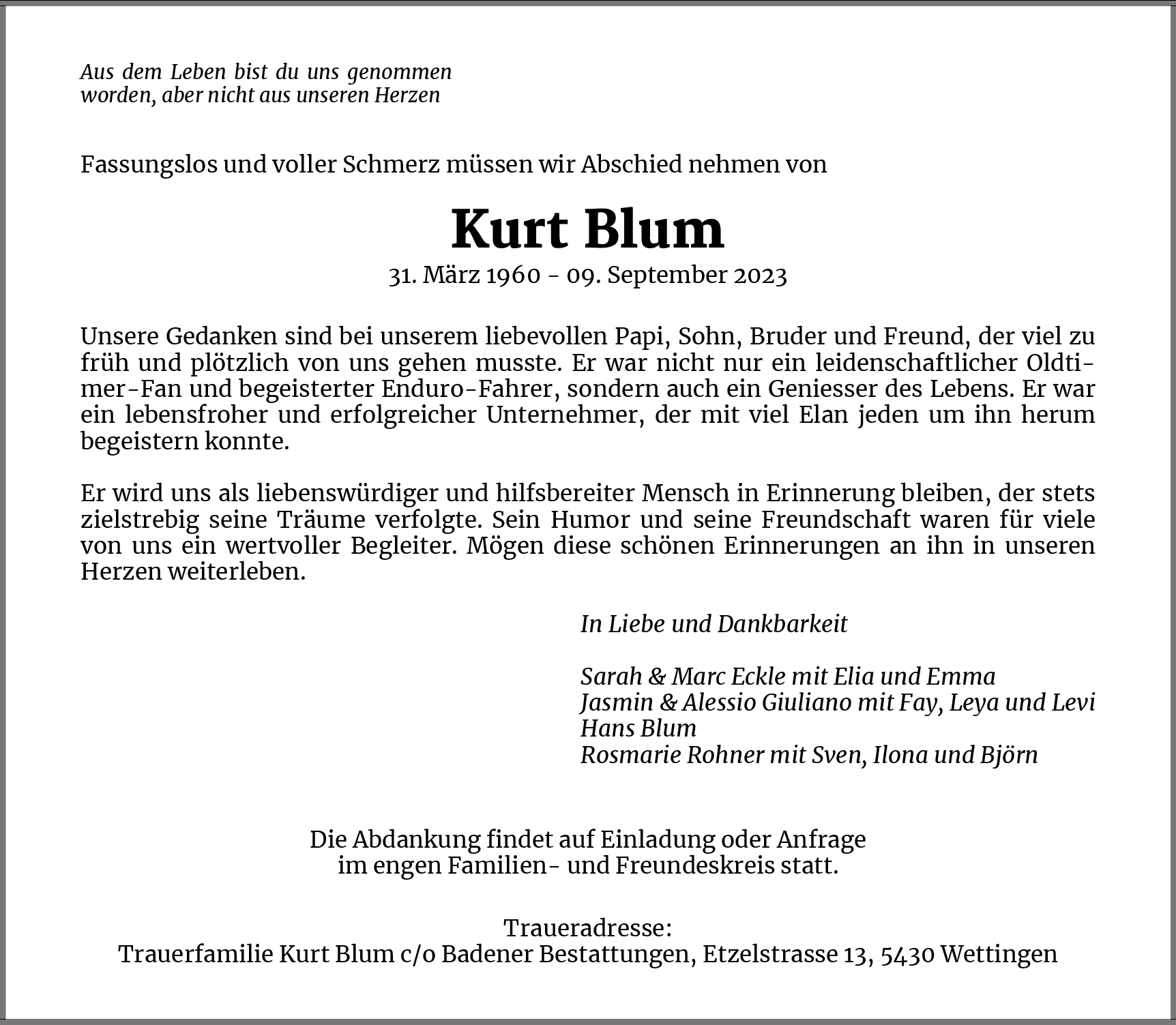 Möchten Sie über neue Todesanzeigen und Kondolenzen für diesen Verstorbenen informiert werden?