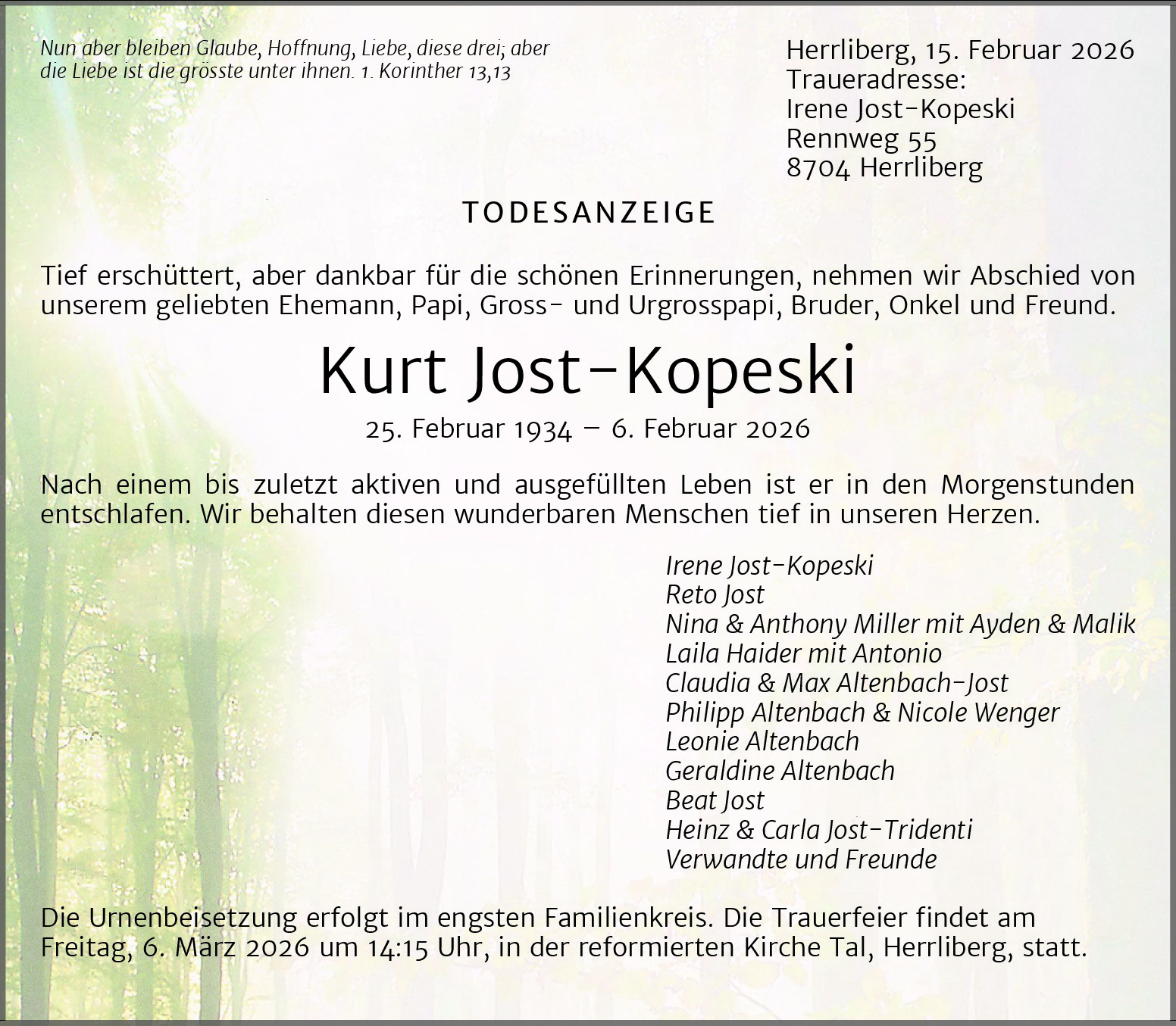 Möchten Sie über neue Todesanzeigen und Kondolenzen für diesen Verstorbenen informiert werden?