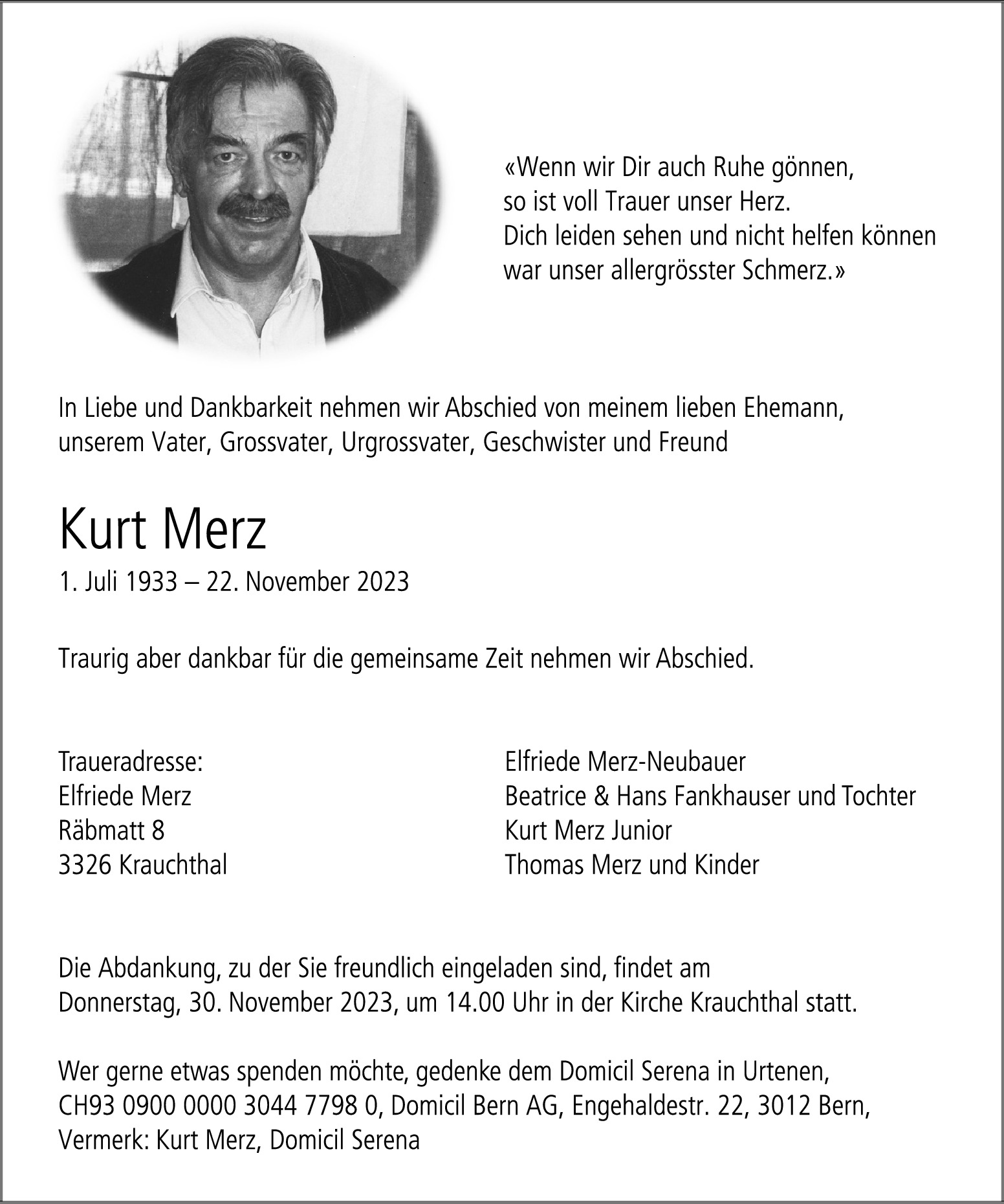 Möchten Sie über neue Todesanzeigen und Kondolenzen für diesen Verstorbenen informiert werden?