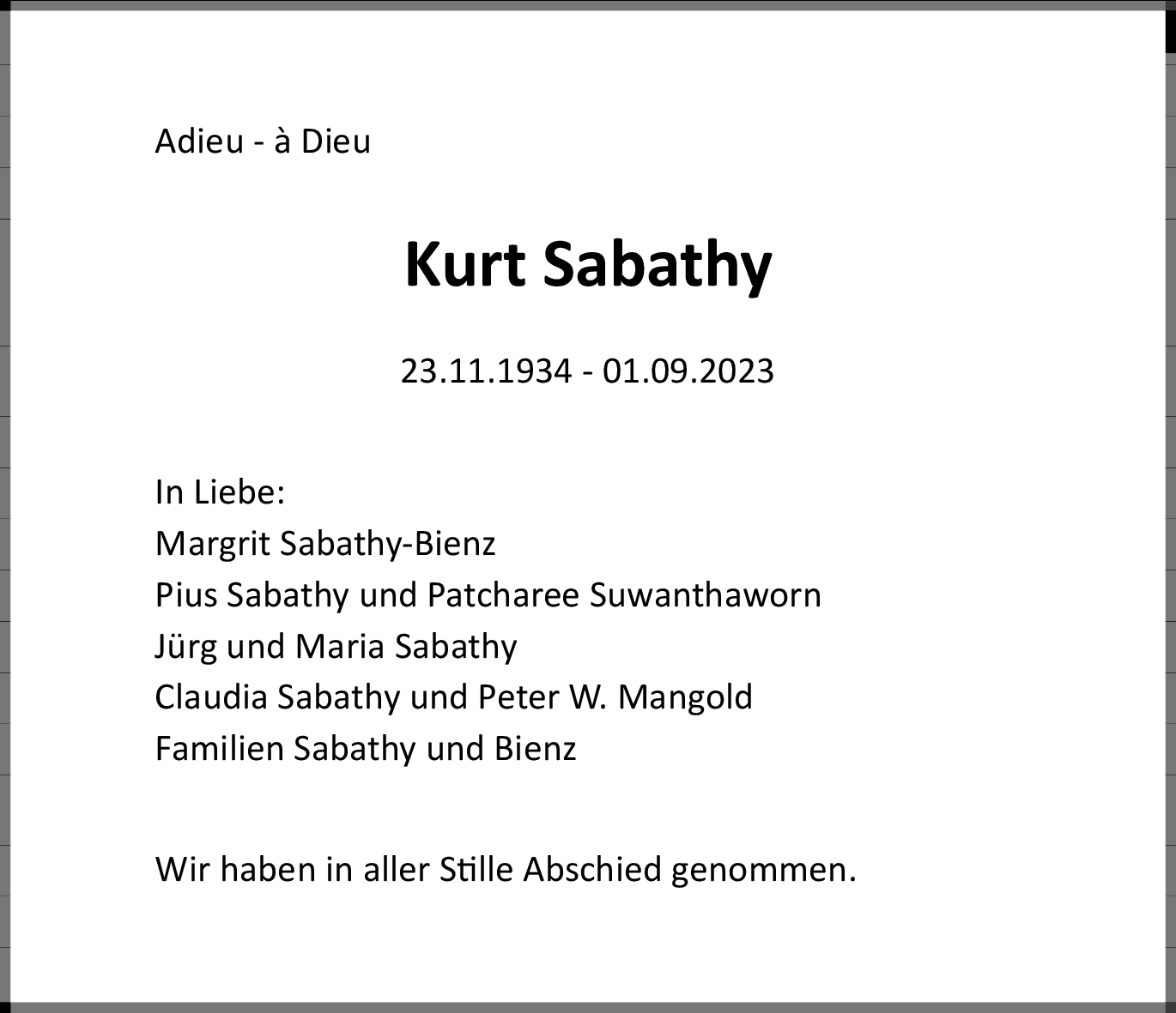 Möchten Sie über neue Todesanzeigen und Kondolenzen für diesen Verstorbenen informiert werden?