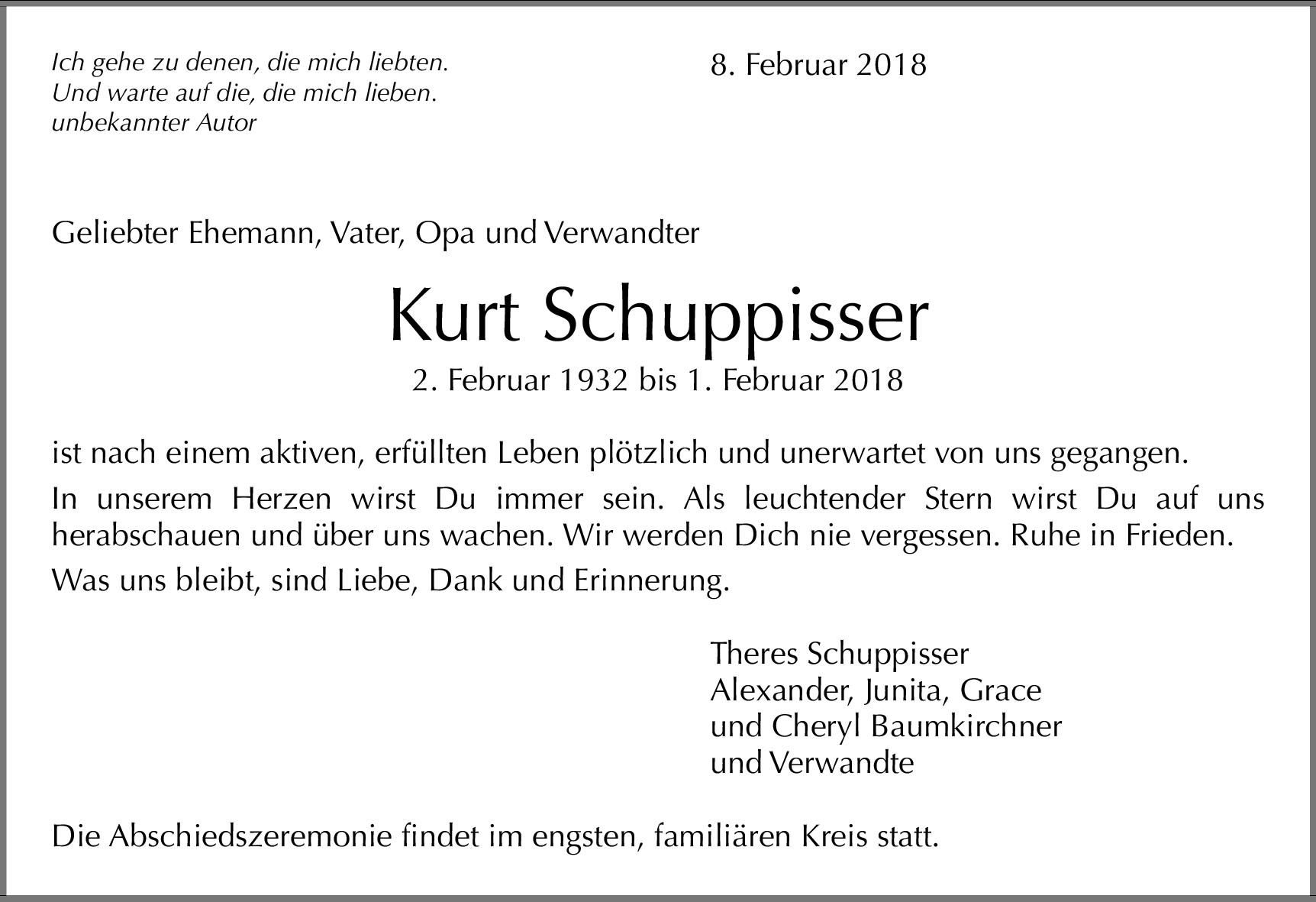 Möchten Sie über neue Todesanzeigen und Kondolenzen für diesen Verstorbenen informiert werden?