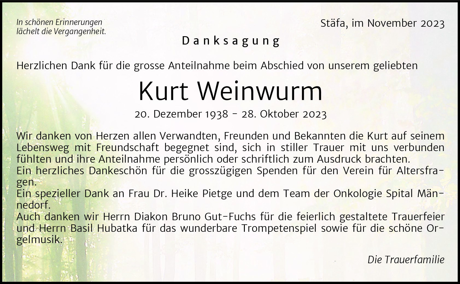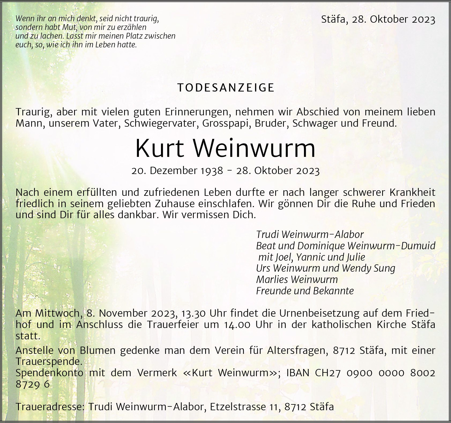 Möchten Sie über neue Todesanzeigen und Kondolenzen für diesen Verstorbenen informiert werden?