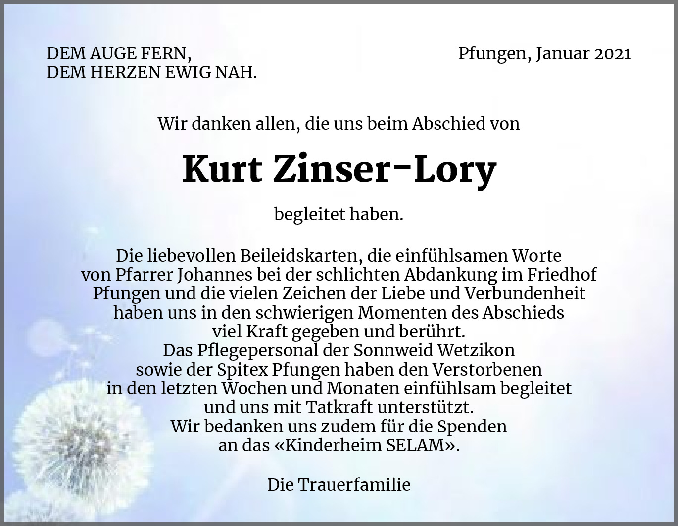 Möchten Sie über neue Todesanzeigen und Kondolenzen für diesen Verstorbenen informiert werden?