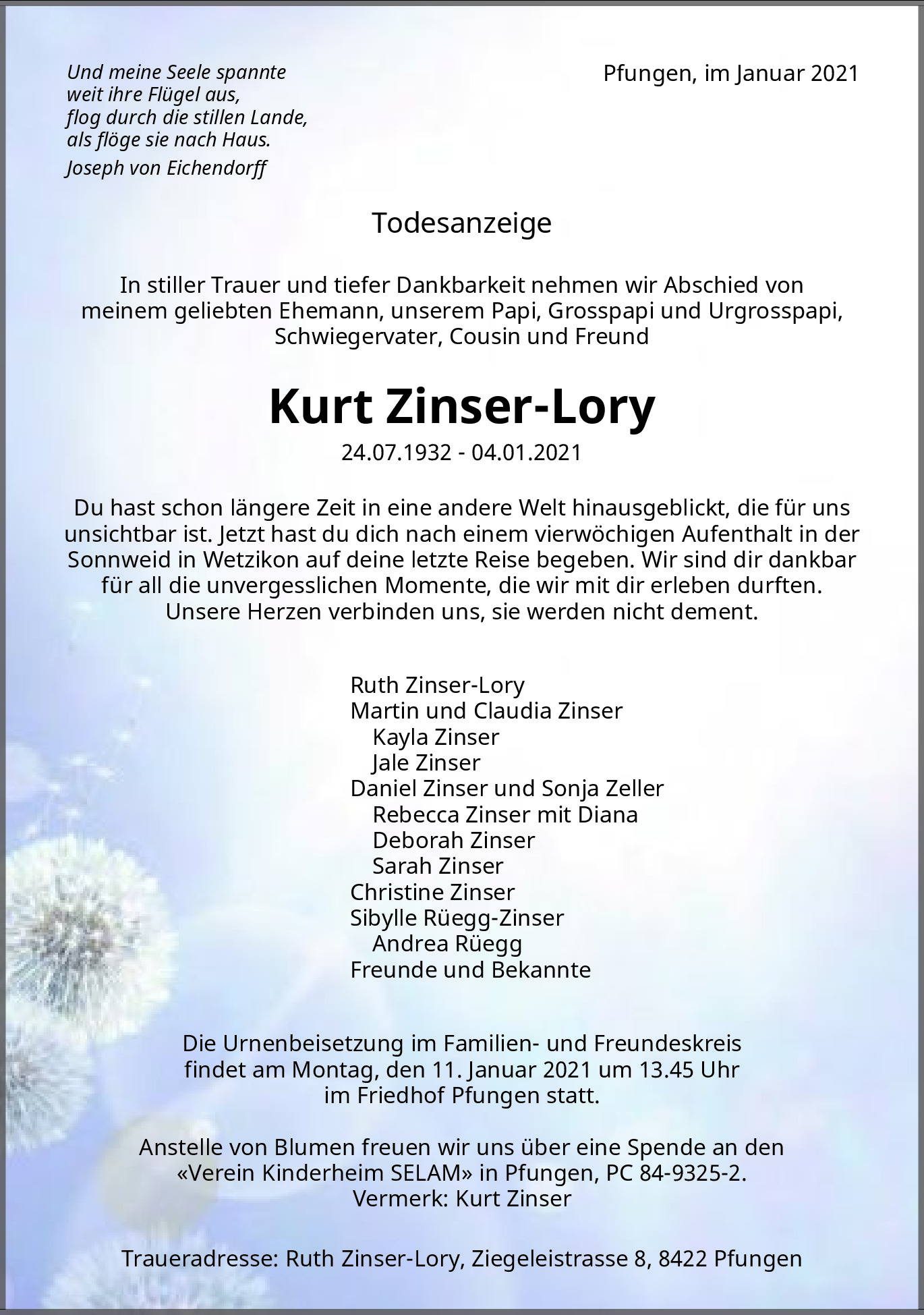 Möchten Sie über neue Todesanzeigen und Kondolenzen für diesen Verstorbenen informiert werden?