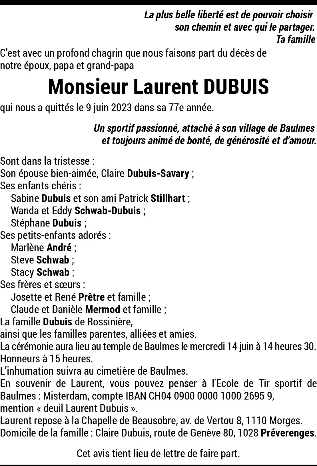 Toute ma sympathie en ces jours de séparation.