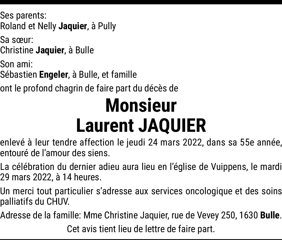 29.03.2022 Melden Chėre famille, C'est avec grande tristesse que nous avons appris le grand deuil qui vous touche. Nous vous envoyons toute notre sympathie et nos sincères condoléances. Mireille et Giuseppe Santoro Von Santoro