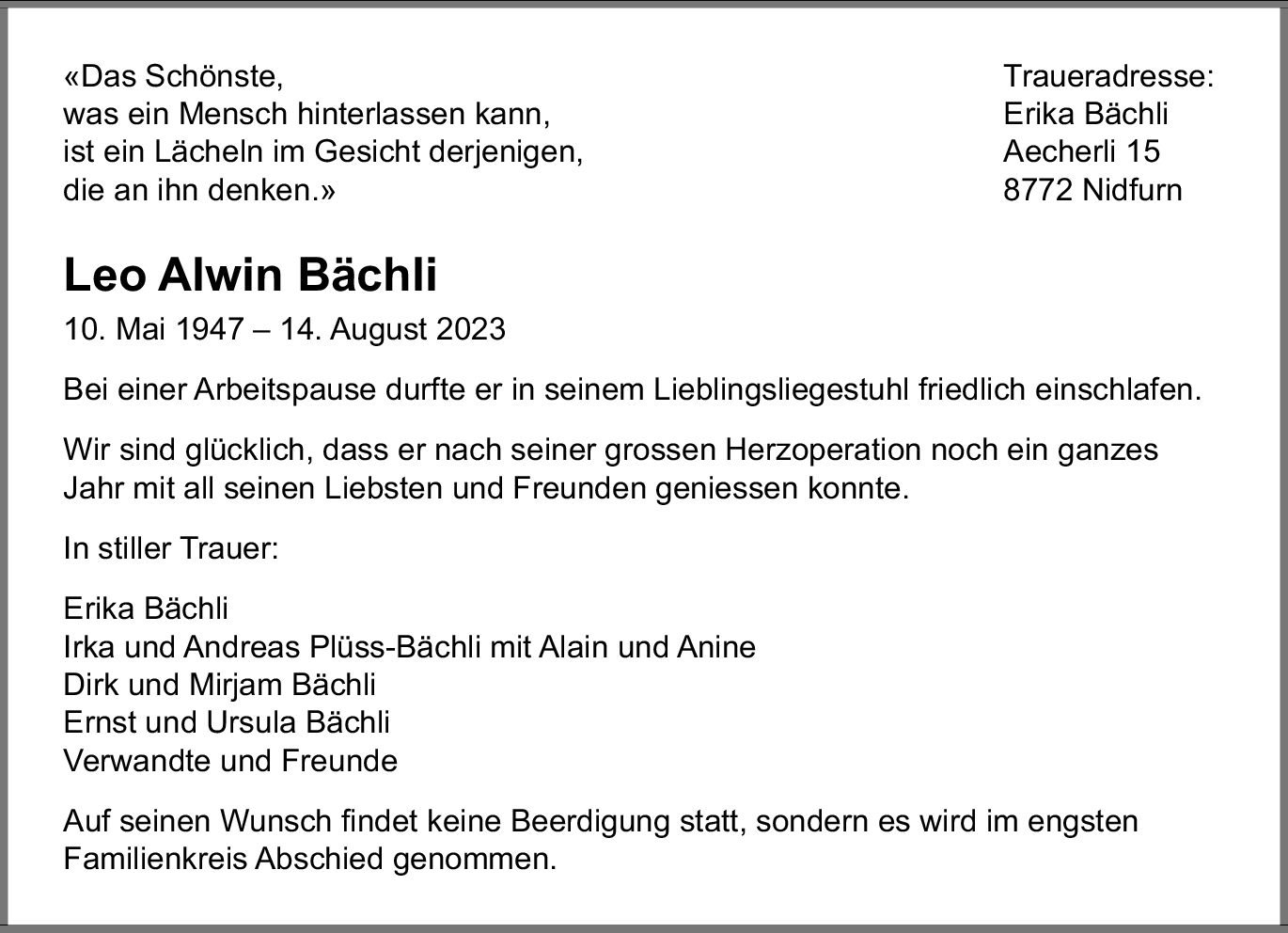 Möchten Sie über neue Todesanzeigen und Kondolenzen für diesen Verstorbenen informiert werden?