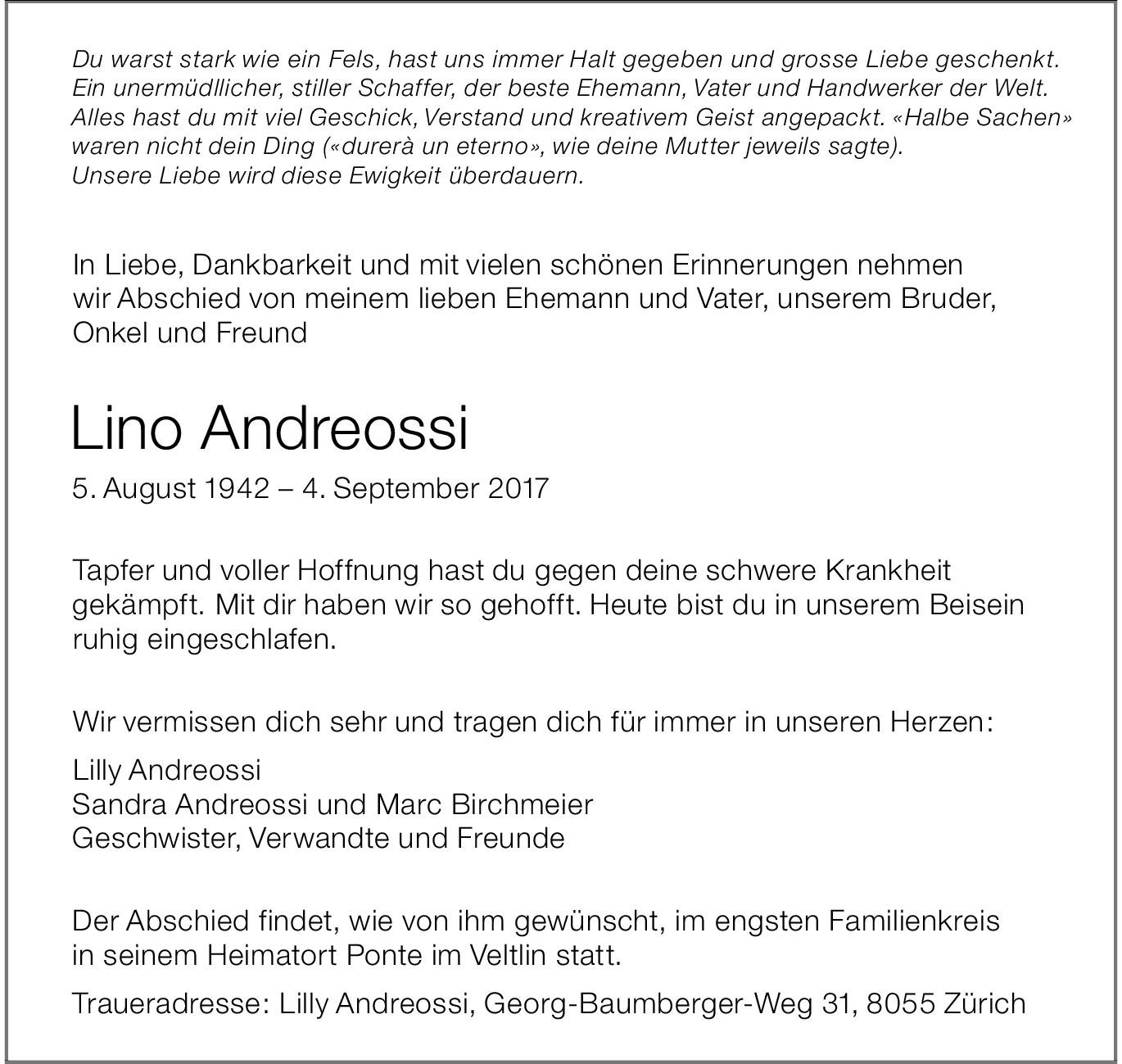 Möchten Sie über neue Todesanzeigen und Kondolenzen für diesen Verstorbenen informiert werden?