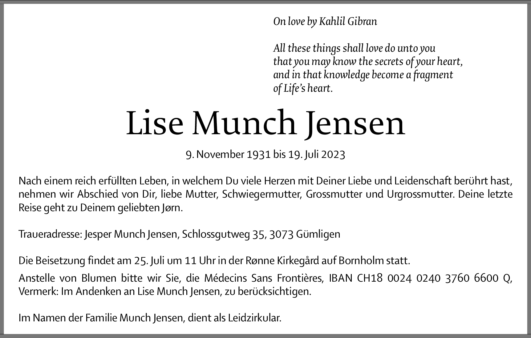 Möchten Sie über neue Todesanzeigen und Kondolenzen für diesen Verstorbenen informiert werden?