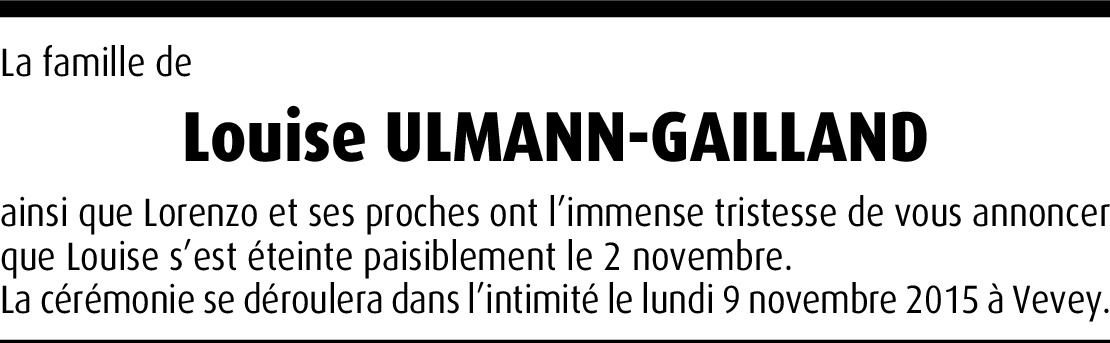 Vor mehr als 4 Jahren Melden Lucien m'a annoncé aujourd'hui 5 novembre le décès de Louise alors que je suis en déplacement aux Etats-Unis. Je vous envoie mes sincères condoléances. Marcel Von Marcel Gyger
