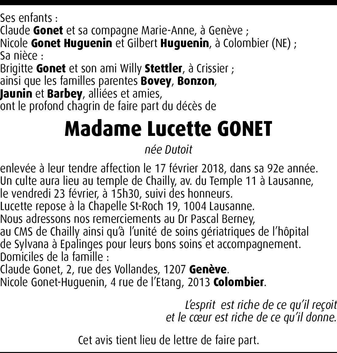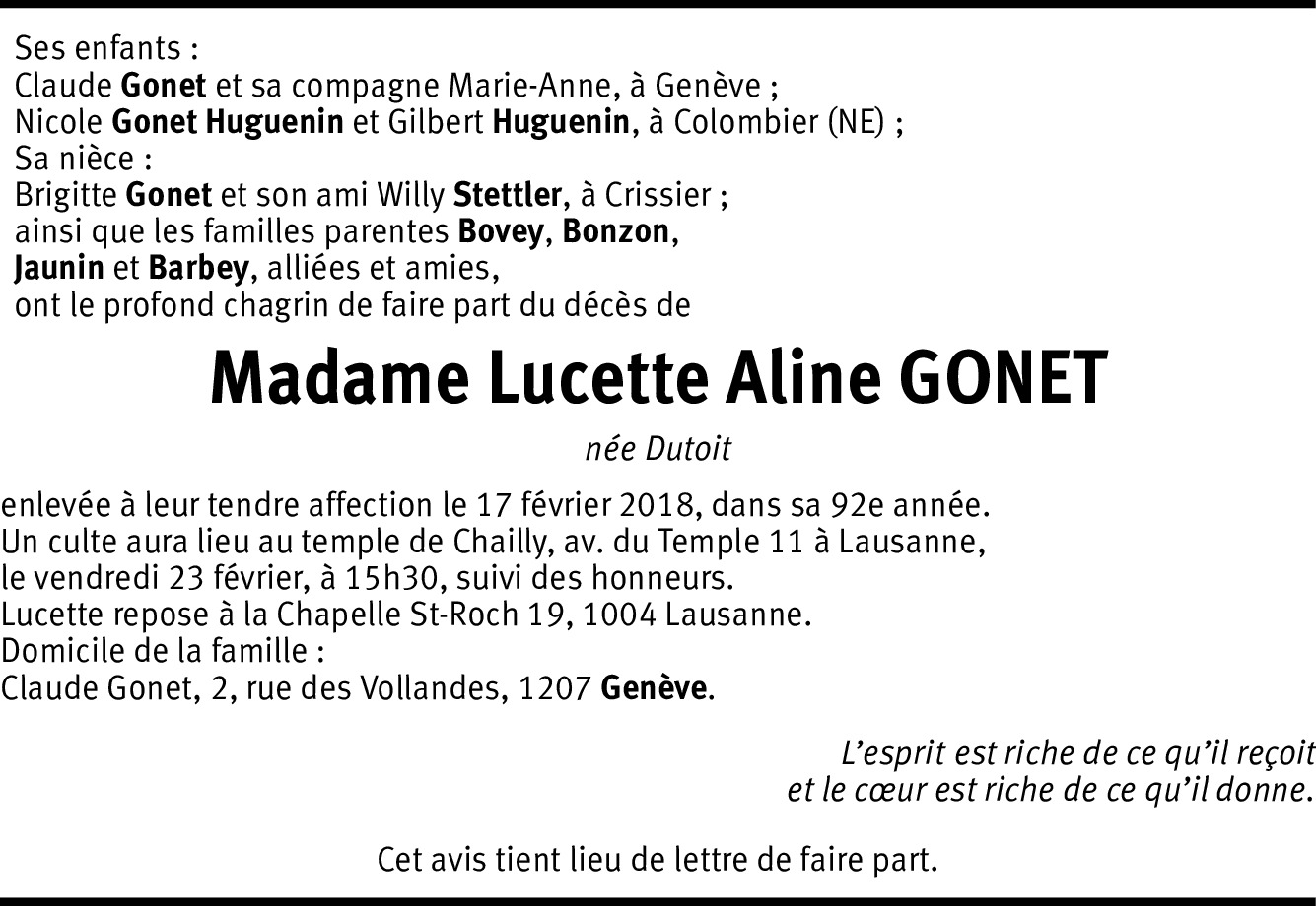 Lucette Aline Gonet Dutoit