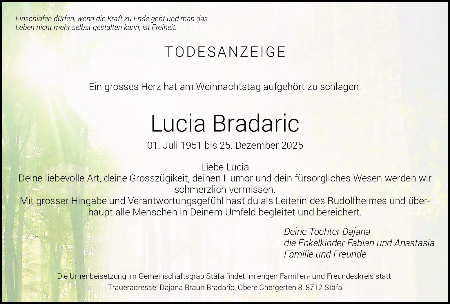 Möchten Sie über neue Todesanzeigen und Kondolenzen für diesen Verstorbenen informiert werden?