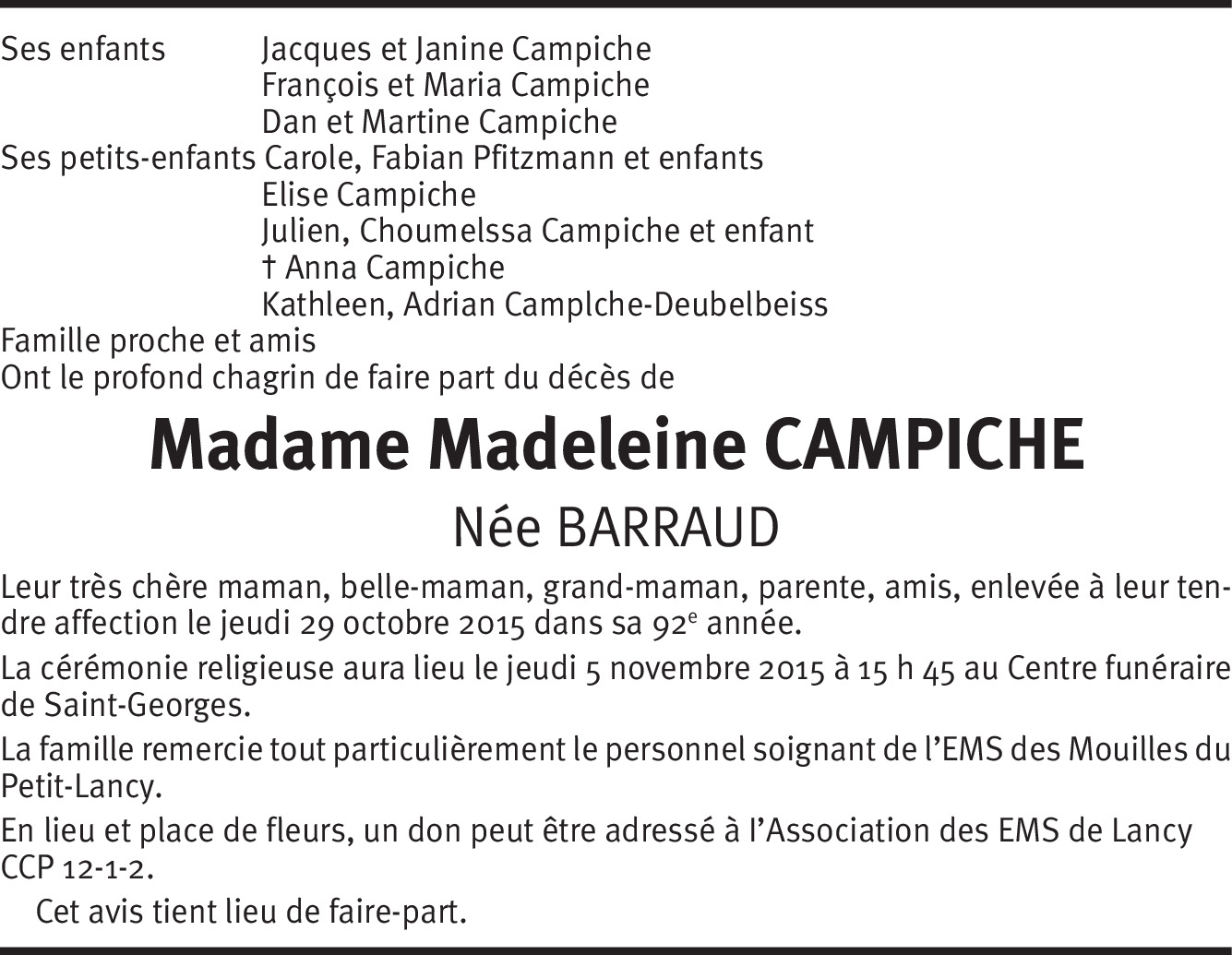 Vor mehr als 4 Jahren Melden Chers amis, c'est avec beaucoup d'émotion que nous avons appris le décès de votre chère maman. En ces monments douloureux, nous sommes en pensée avec vous. Nous vous présentons nos sincères condoléances. Suzanne, Corinne et Nicole Michaud Von Nicole Michaud