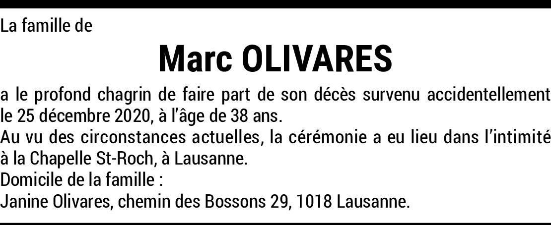 C'est avec grande tristesse que je vous envoie ce message de tendresse. Marc était avec moi à l'école aux Bossons, puis nous avons continué à nous croiser reguliérement par le hasard de la vie. Je suis profondément émue et je vous envoie mes plus grandes pensées à vous sa maman et à Olivier.
