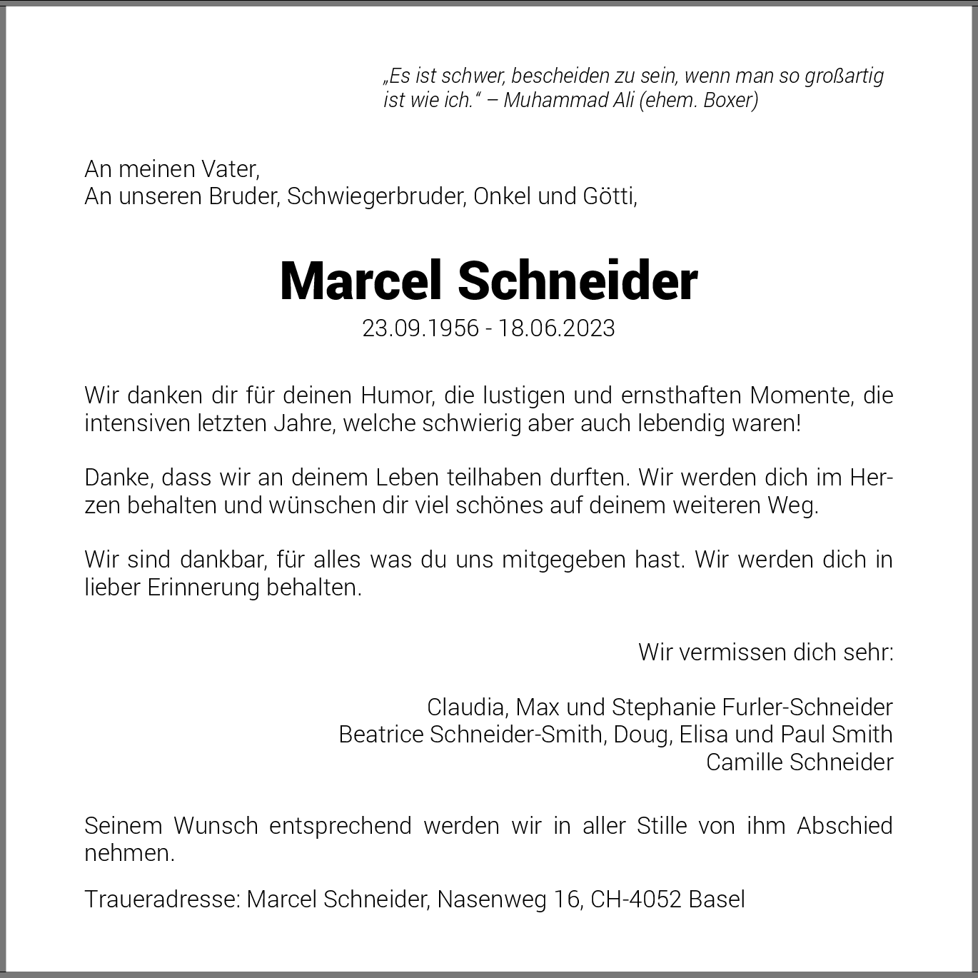 Möchten Sie über neue Todesanzeigen und Kondolenzen für diesen Verstorbenen informiert werden?