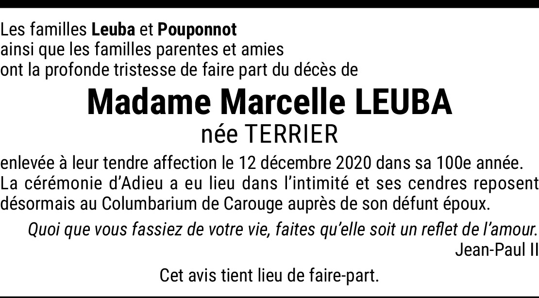 C'est avec tristesse que j'ai appris par la presse que vous venez de perdre votre maman et suis de tout cœur en pensées avec vous. J'espère que vous trouverez la force et les soutiens nécessaires pour traverser cet inéluctable passage. Je n'ai pas souvent eu l'occasion de croiser Marcelle mais je garderai en mémoire son sourire bienveillant.