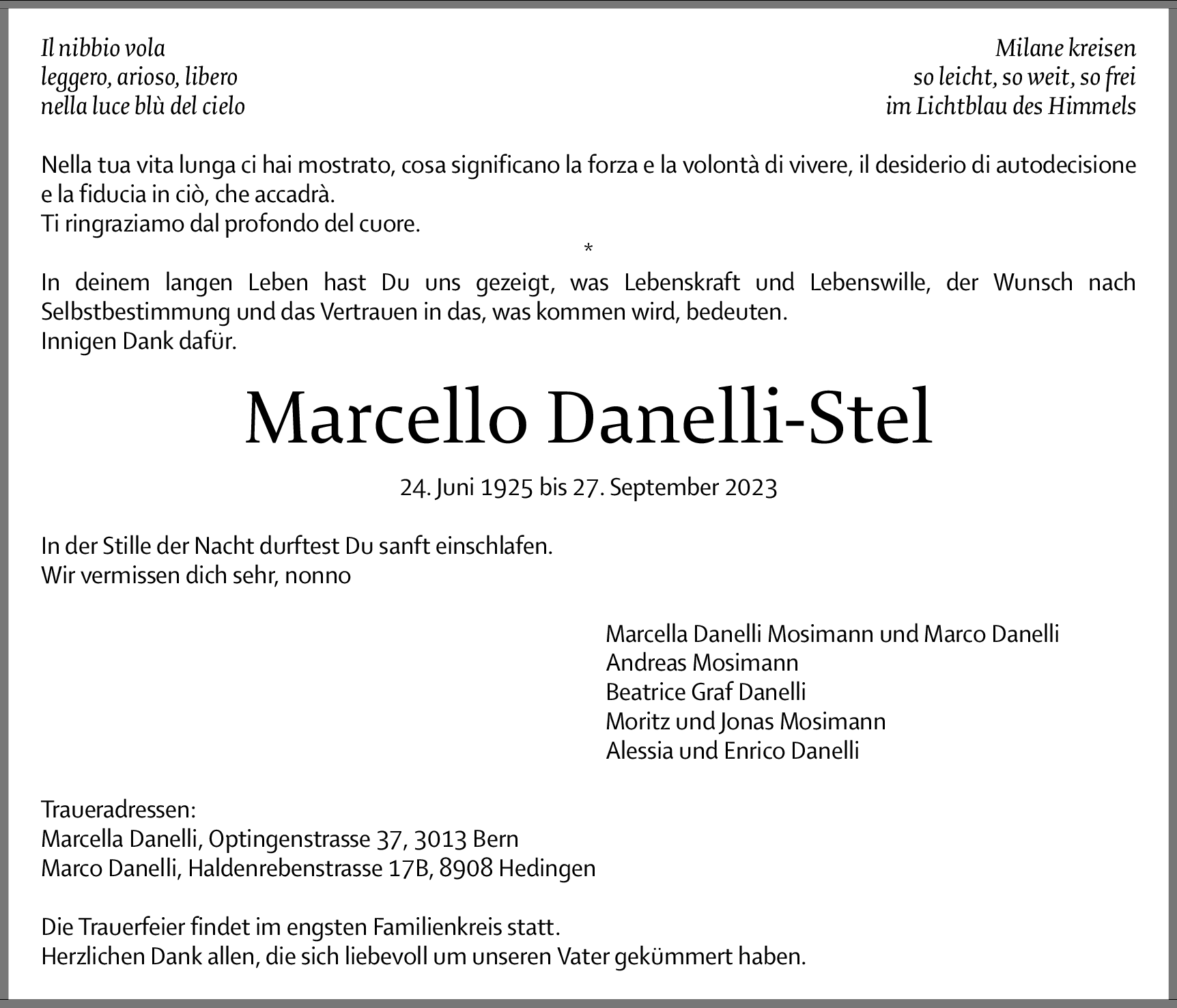 Möchten Sie über neue Todesanzeigen und Kondolenzen für diesen Verstorbenen informiert werden?