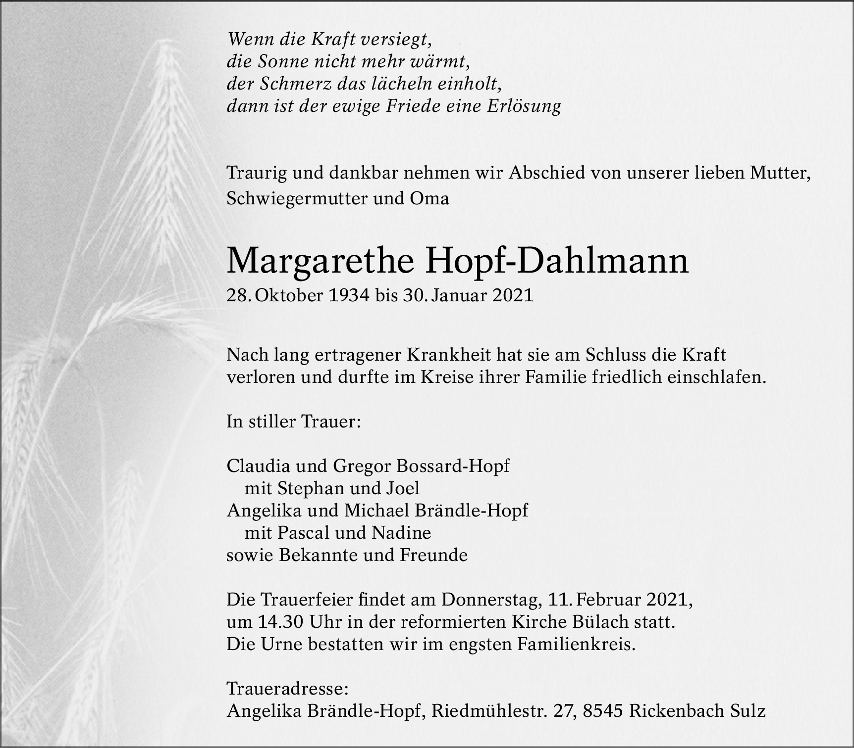 Möchten Sie über neue Todesanzeigen und Kondolenzen für diesen Verstorbenen informiert werden?