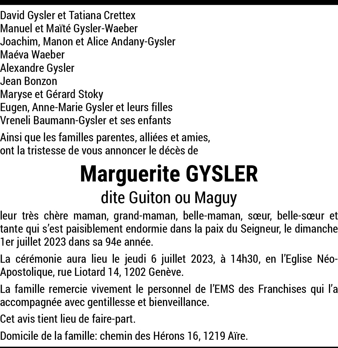 Te voilà réunie avec ton époux Walter. Même que vos retrouvailles son sujet de joie, ici-bas la tristesse est palpable. Je pense à ta famille et me lie à toi.
