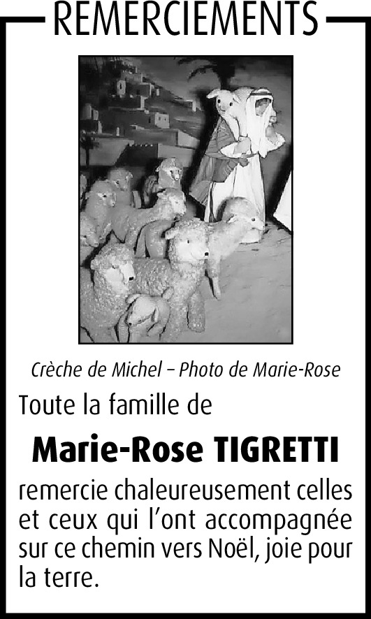 Vor mehr als 4 Jahren Melden Mes plus sincères condoléances, à la fratrie Tigretti. Que de souvenirs à la rue de la Flèche et à St-Joseph... Avec vous tous, ainsi que maman Juliette, et papa Michel. Von Dolores Dufour-Caselli