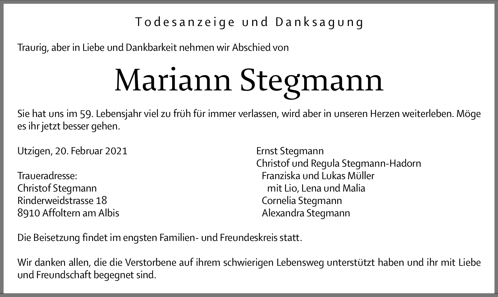 Möchten Sie über neue Todesanzeigen und Kondolenzen für diesen Verstorbenen informiert werden?