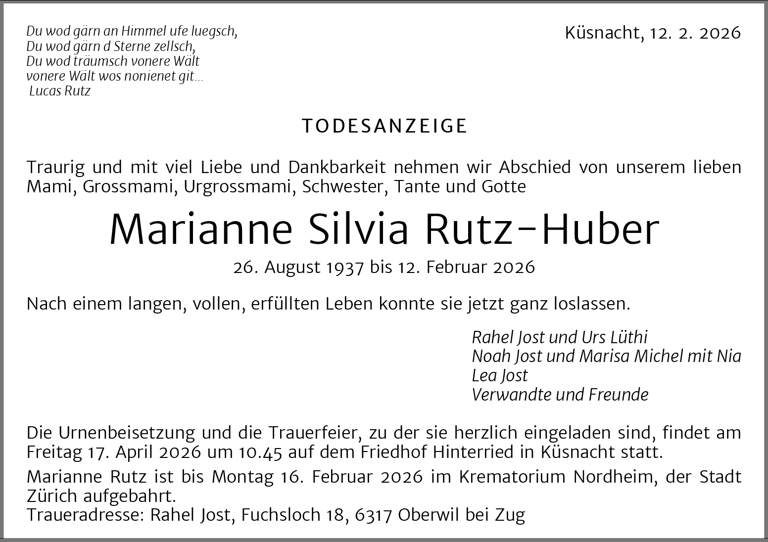 Möchten Sie über neue Todesanzeigen und Kondolenzen für diesen Verstorbenen informiert werden?