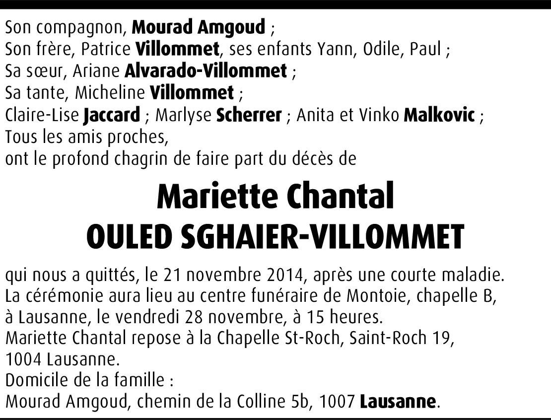 Mariette Chantal Ouled Sghaier-Villommet