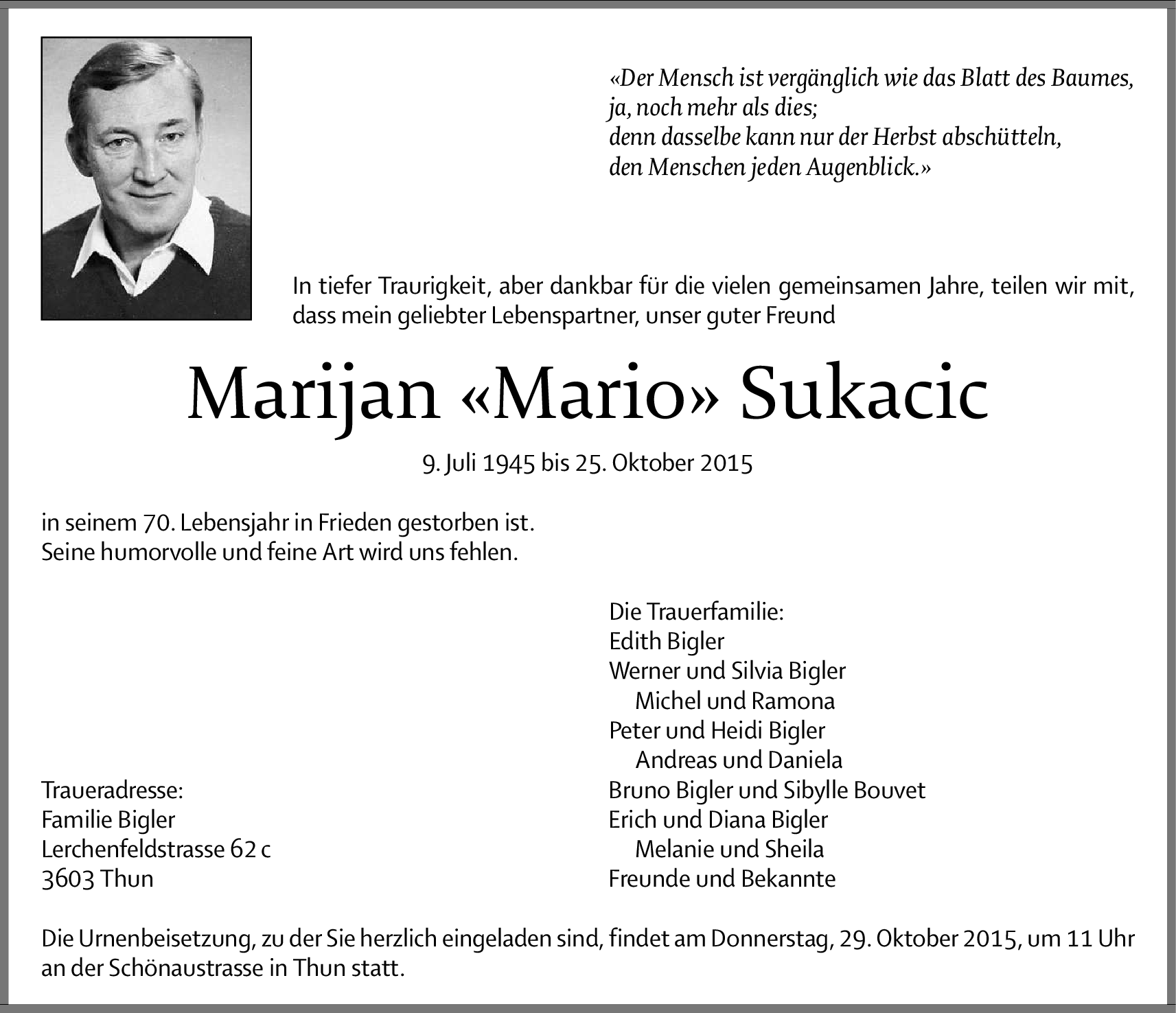 Möchten Sie über neue Todesanzeigen und Kondolenzen für diesen Verstorbenen informiert werden?