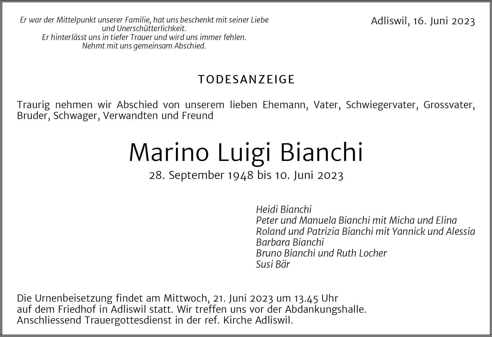 Möchten Sie über neue Todesanzeigen und Kondolenzen für diesen Verstorbenen informiert werden?
