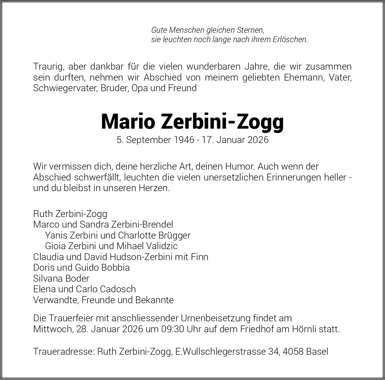 Möchten Sie über neue Todesanzeigen und Kondolenzen für diesen Verstorbenen informiert werden?