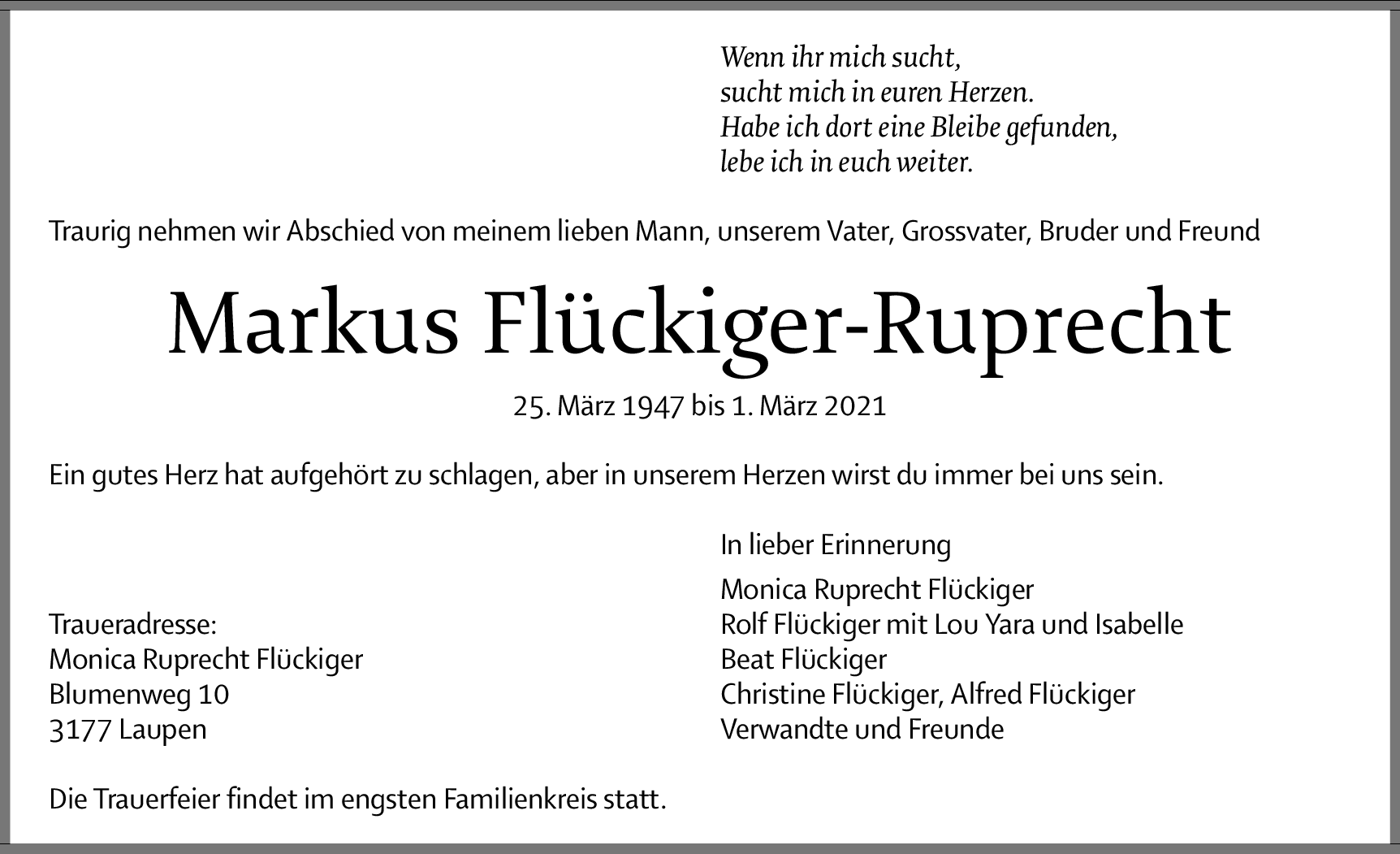 Möchten Sie über neue Todesanzeigen und Kondolenzen für diesen Verstorbenen informiert werden?