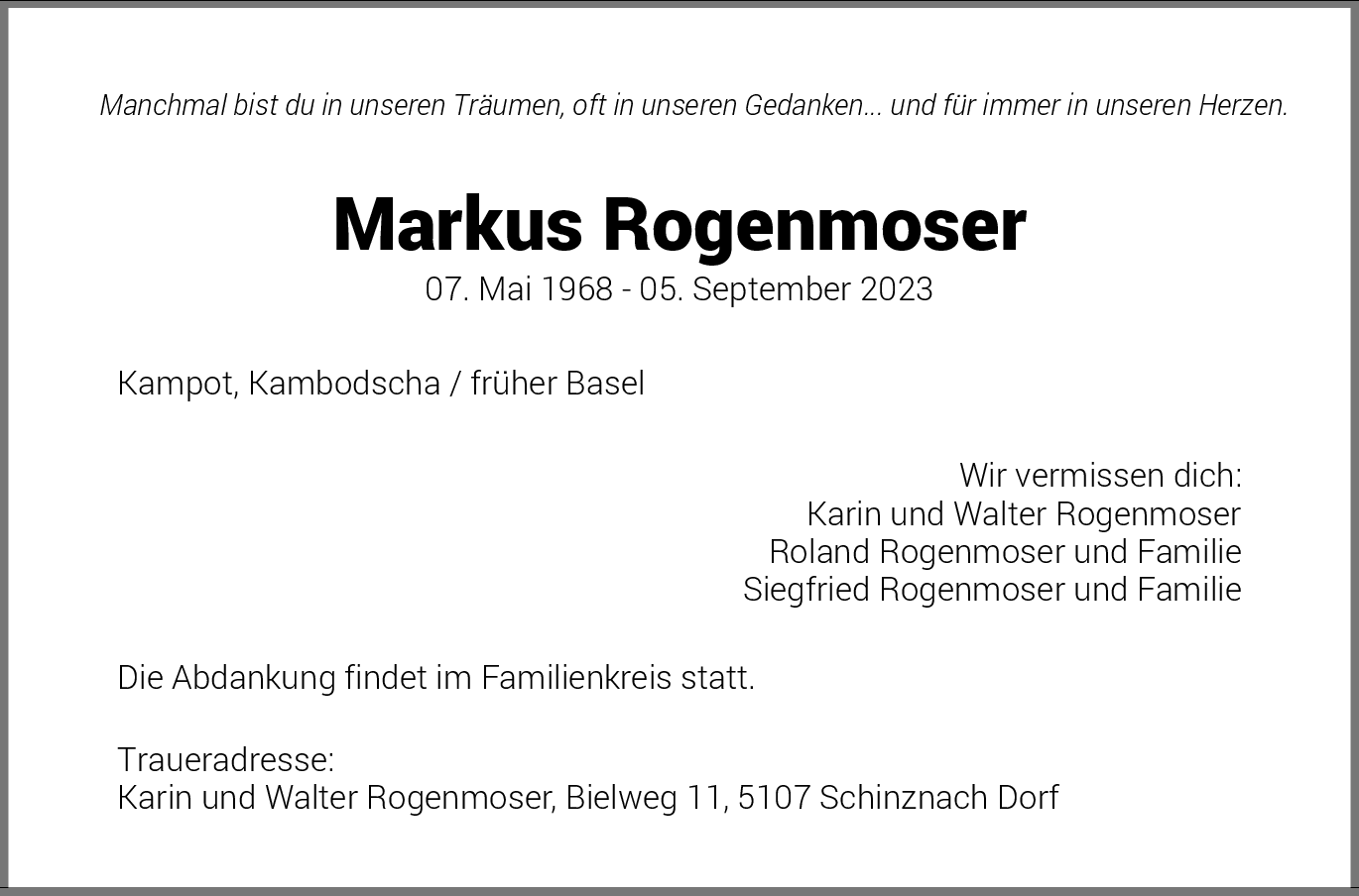 Möchten Sie über neue Todesanzeigen und Kondolenzen für diesen Verstorbenen informiert werden?