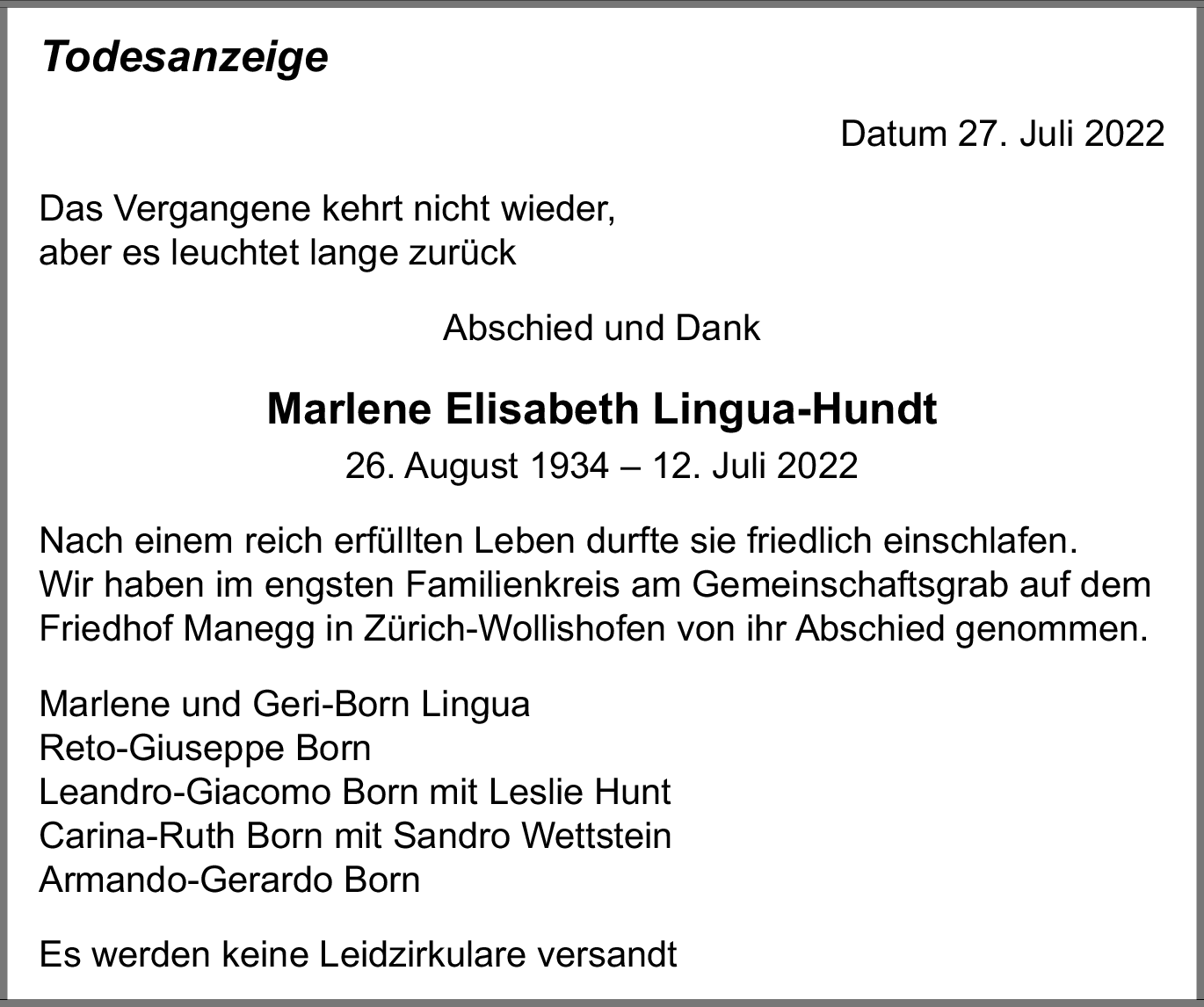 Todesanzeigen