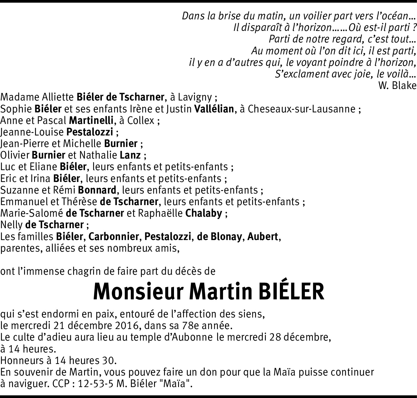 Une pensée émue et de sincères condoléances à sa famille pour la disparition de Martin, que j'ai rencontré comme scout à la troupe Rhône de Genève et revu à l'occasion d'une soirée des Anciens en 2015. Beaucoup de souvenirs et d'émotions ensemble, une belle école de vie que le scoutisme. Au revoir, Martin, nous nous retrouverons à l'Orient céleste.