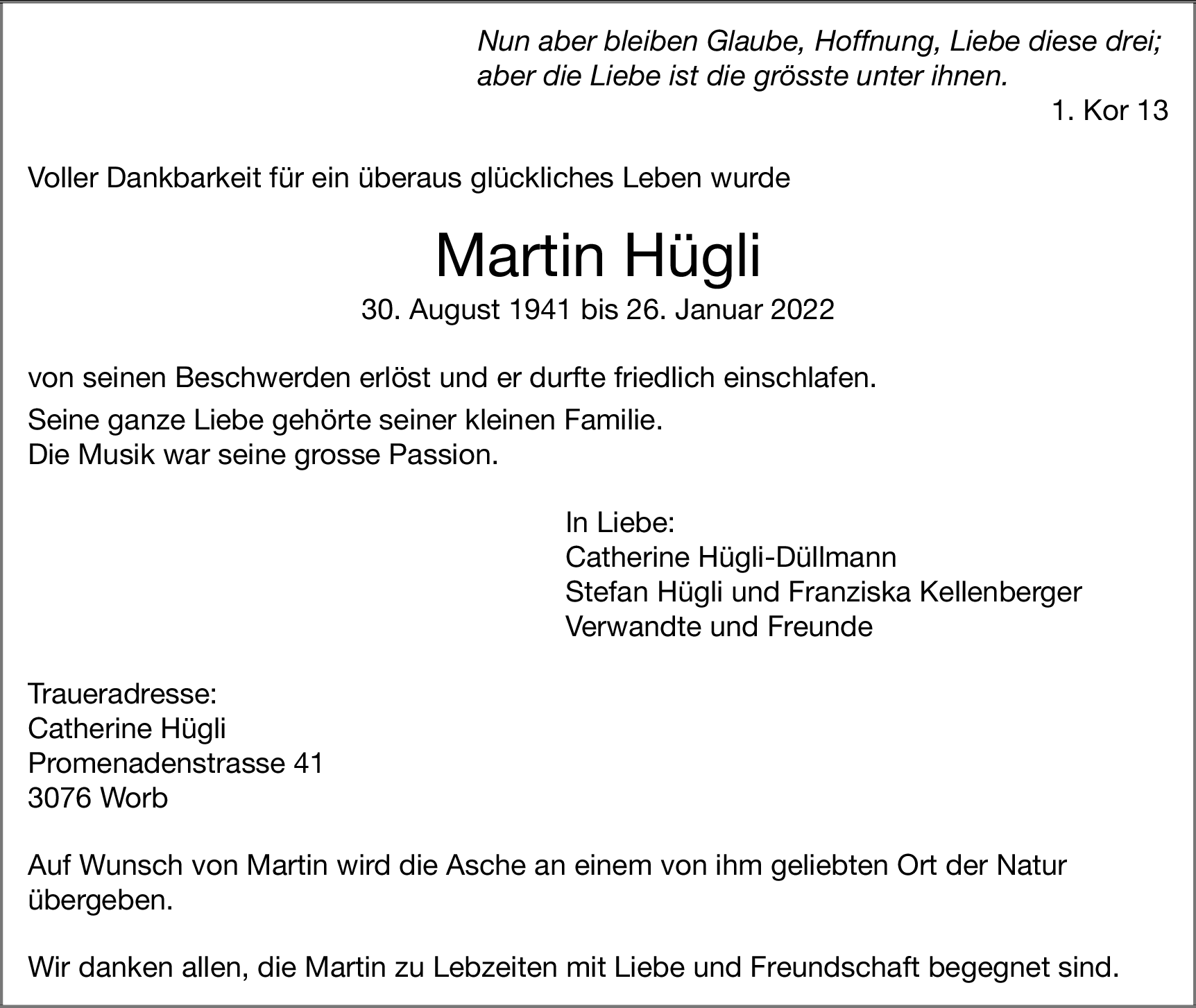 Möchten Sie über neue Todesanzeigen und Kondolenzen für diesen Verstorbenen informiert werden?