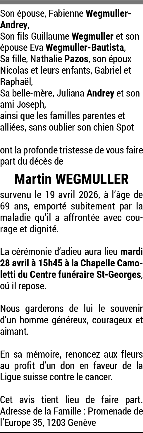 23.04.2026 Melden Sincères condoléances à Fabienne et sa famille,dans ce moment douloureux,beaucoup de courage Tes amis d enfances Von Bornand fabienne