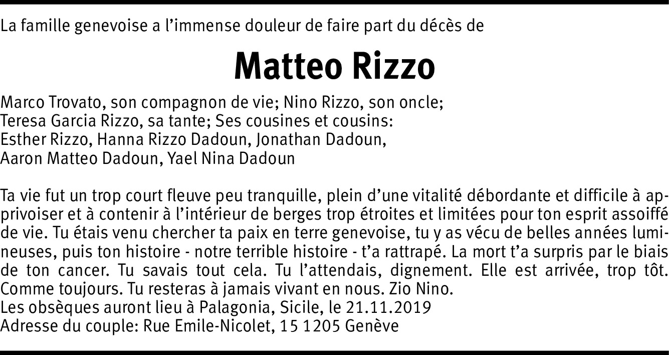 Mes plus sincères condoléances pour la perte prématurée de Matteo, une personne vraiment belle qui nous manquera beaucoup. Tatiana