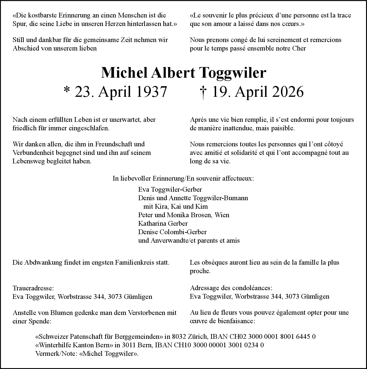 Möchten Sie über neue Todesanzeigen und Kondolenzen für diesen Verstorbenen informiert werden?