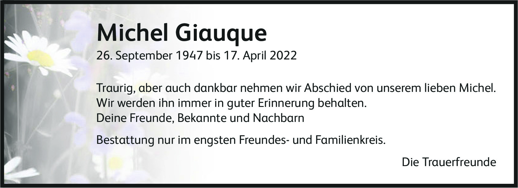 Möchten Sie über neue Todesanzeigen und Kondolenzen für diesen Verstorbenen informiert werden?