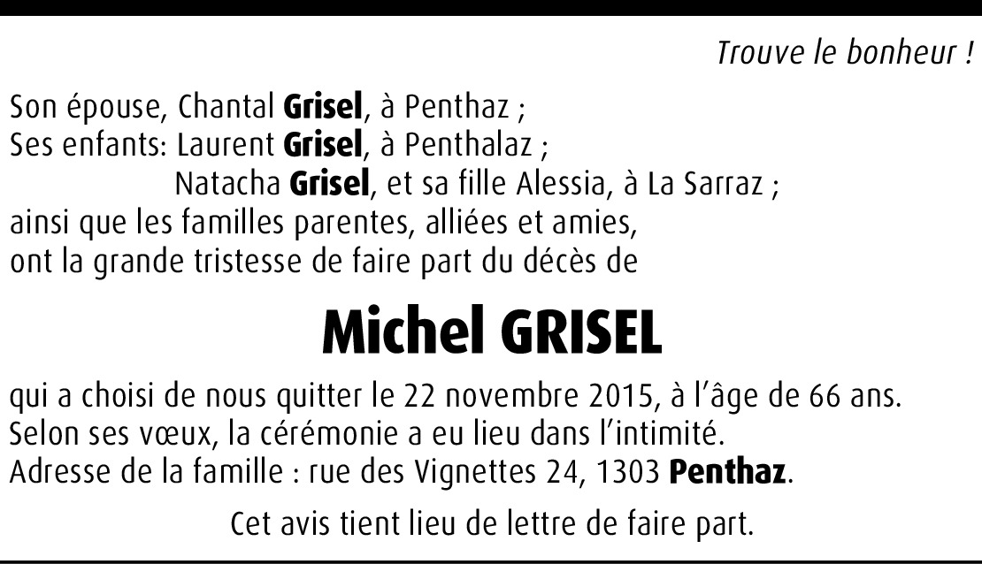 Chère Chantal et famille, nous sommes de tout cœur avec vous en ces tristes jours. Penssons bien à vous. Recevez, chère famille, toute notre sympathie et notre amitié.