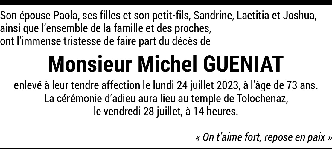 Je suis de tout coeur avec vous dans cette douloureuse épreuve de la séparation d'avec un être cher. Michel était vraiment une personne attachante que je n'oublierai jamais.