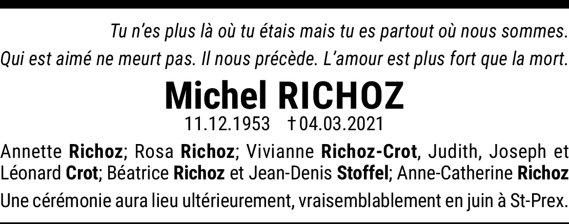 Vor mehr als 4 Jahren Melden Que de souvenirs remontent à la surface en prenant connaissance de ton décès. Tous ces temps de partage à Vaumarcus il y a si longtemps... Je pense particulièrement à Viviane en cette période de séparation. Toutes mes condoléances. Von Anne BERNHARD