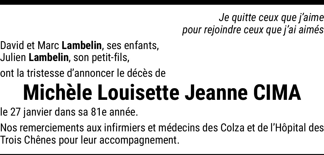 C'est avec tristesse que j'apprend le départ de Michèle que j'ai bien connu puisqu'elle était une amie de feue ma maman Mme Jacqueline FUCHS décédée le 31 juillet 2018. Michèle était une femme souriante, toujours pleine bonne volonté, portée vers les autres, puisqu'elle était bénévole pour le Téléthon pendant des années. Qu'elle repose en paix.