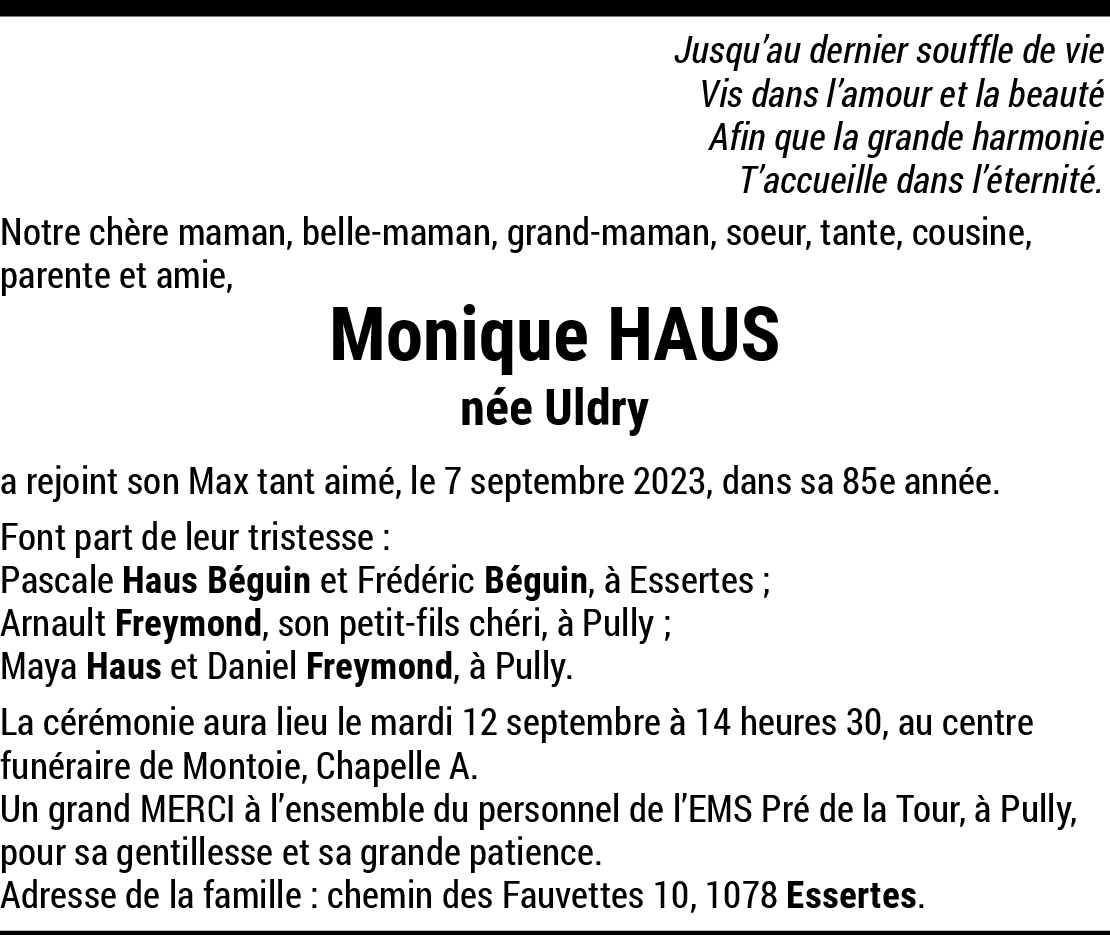 11.09.2023 Melden Chère Pascale et Fred Je suis de tout cœur avec vous dans ce moment de séparation Pouvant malheureusement pas venir je serais en Pensées avec vous Gros bisous dom Von Samson
